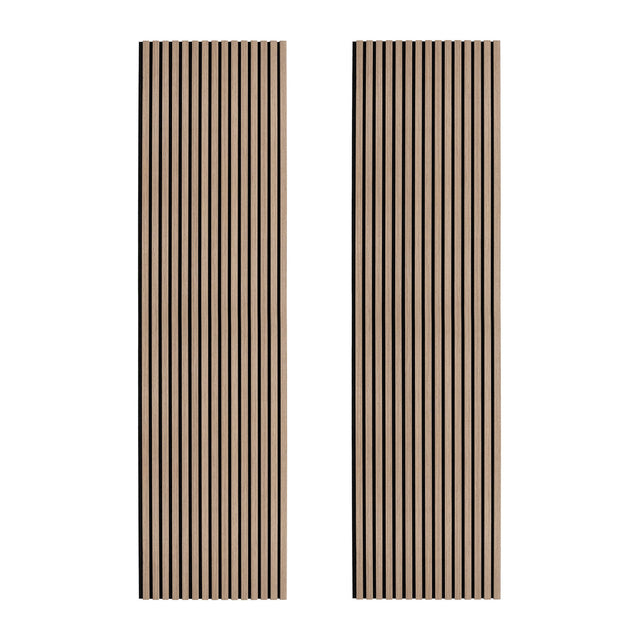 Installing these panels is straightforward thanks to the included fixing kit. Designed to mount directly onto walls or ceilings, they offer versatility for a wide range of applications. Measuring 240cm in height and 60cm in width per panel, these acoustic slat panels cover a generous surface area, making them ideal for larger spaces or bespoke installations.